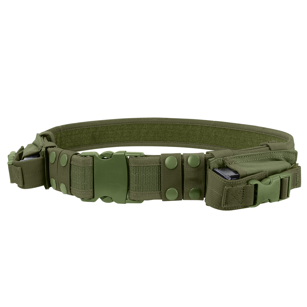タクティカルベルトは、あらゆる方策に対応するための基盤となるベルトです。 ピストルマガジンを収納することができ、クイックリリースバックルですばやく展開できます。 機能性を重視して作られており、かさばることなく、安定したベースを提供します。